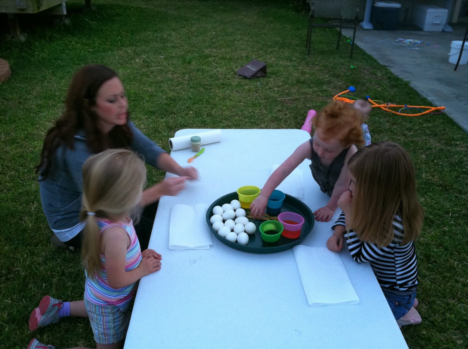 Dying Easter eggs at my sister's house.